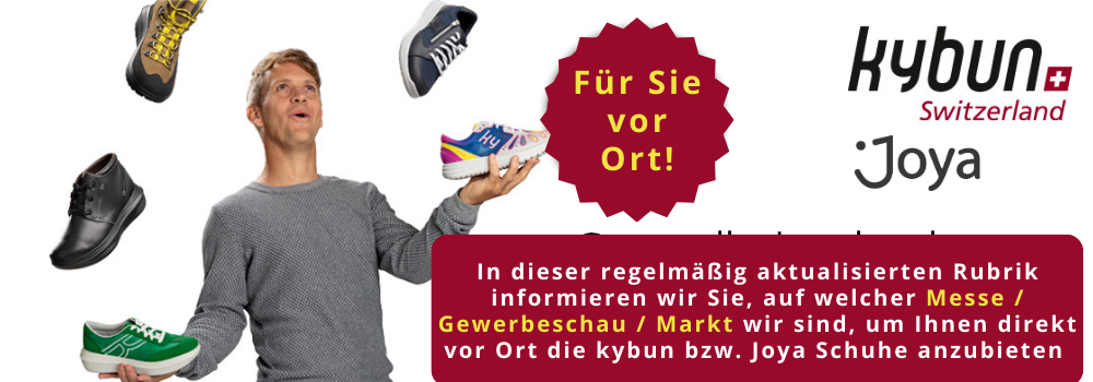 Aus kyBoot wurde kybun Schuh. Seit 2012 arbeiten wir als einer der ersten deutschen Partner mit der kybun Bewegungs-Lösung. Unser Motto seit jeher lautet: Therapieren statt operieren! Der Schweizer Trampolinschuh mit seiner weich-federnden Sohle lässt viele unserer Kunden wieder ohne Schmerzen und Beschwerden gehen. Wir führen das komplette Sortiment von Damen und Herrenschuhen vor Ort. Alltagsschuhe, Sneaker, Hausschuhe und Outdoors sind das ganze Jahr über für Sie verfügbar. Probieren Sie Ihren ersten kybun Schuh noch heute im Geschäft vor Ort! Sie werden ihn sicher nicht mehr ausziehen wollen.