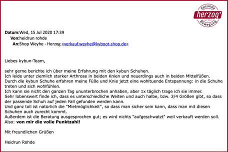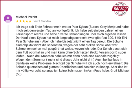 "Sehr gute Beratung und Service. Die kyBoot (kybun) Schuhe trage ich täglich" Ulrich Kortaus - Kunde im Shop Kirchweyhe
