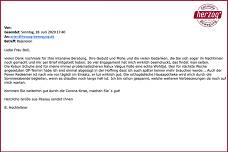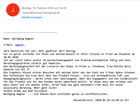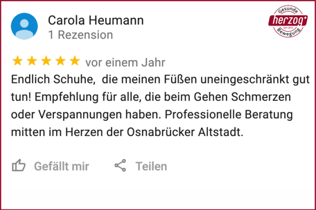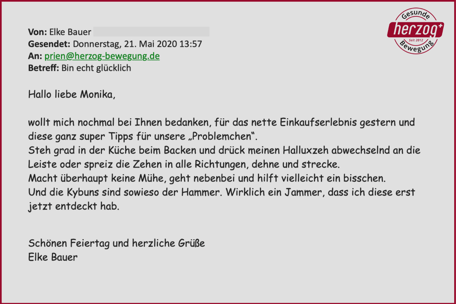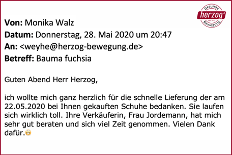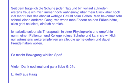 "Brief von Kundin: Ein kleines Loblied auf einen großartigen Schuh. Der Gang ist leicht und federnd." Waltraut Helbig - Shop Weyhe