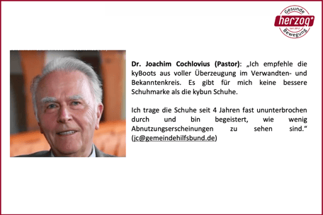 "Ich empfehle die kybun Schuhe aus voller Überzeugung im Verwandten- und Bekanntenkreis." Dr. Joachim Cochlovius
