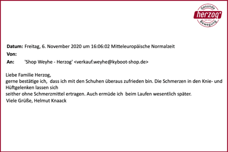 "Ich bin mit den kybun Schuhen überaus zufrieden." Helmut Knaack, Kunde beim Shop Weyhe